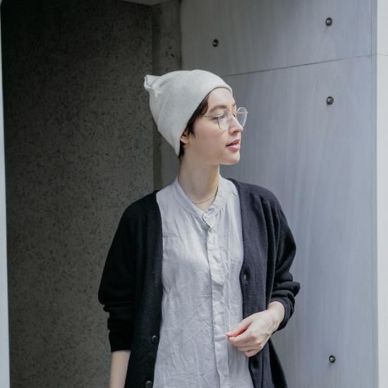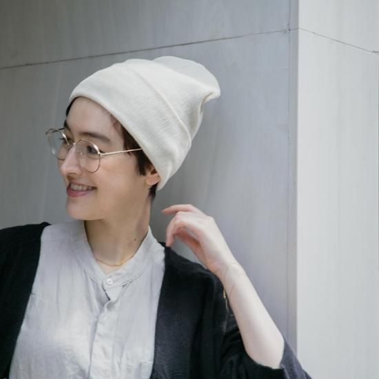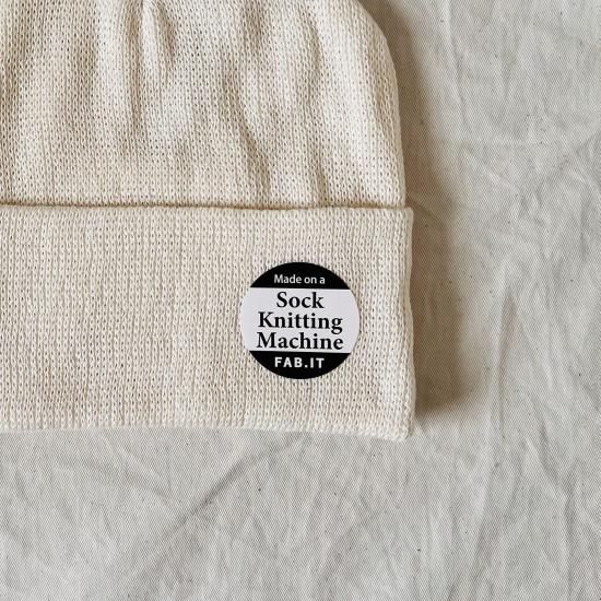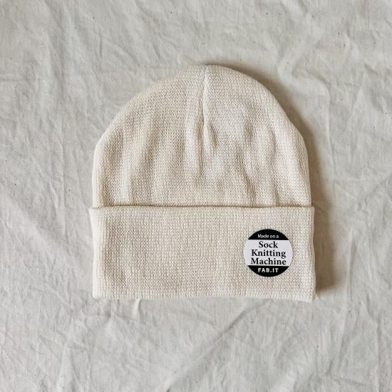 オーガニックコットンを使用した靴下編機から作られたビーニー。