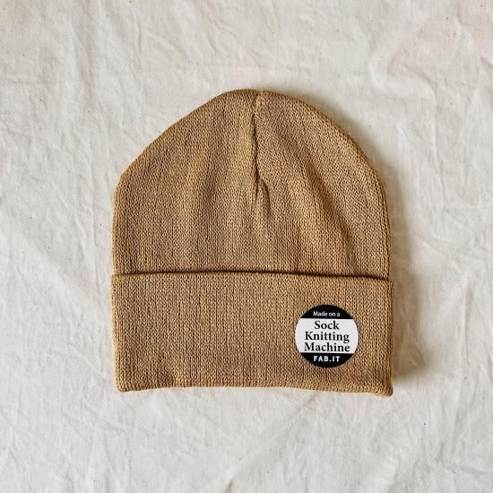 オーガニックコットンを使用した靴下編機から作られたビーニー。