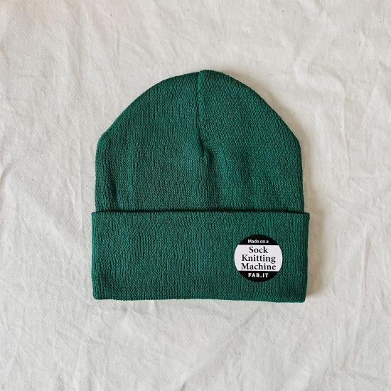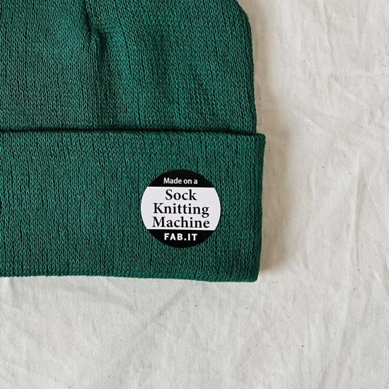 オーガニックコットンを使用した靴下編機から作られたビーニー。
