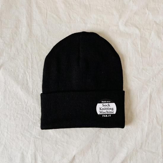 We use a knitting machine that can knit a large diameter, whereas a normal sock knitting machine is too narrow to be worn on the head. For the knitting fabric, a special ribbed knitting of the Chuck's footwear , which represents FAB.IT, is used to achieve a soft gauze-like feel and superb fit that cannot be felt with ordinary knit caps.