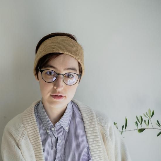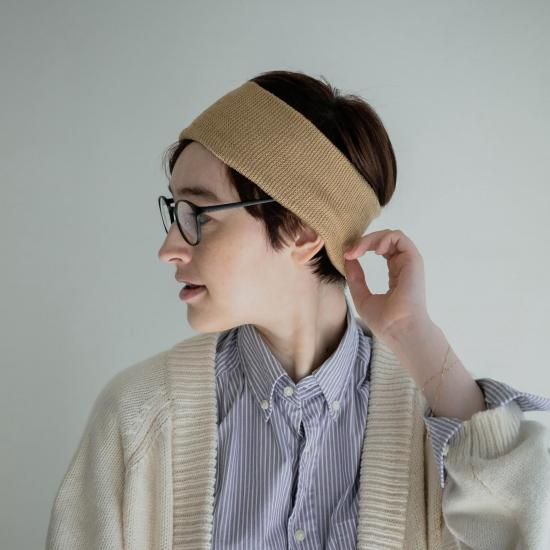 オーガニックコットンを使用した靴下編機から作られたネックバンド兼ヘッドバンド。