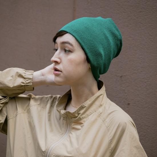 Normal sock knitting machines are too thin to be worn on the head, but we use knitting machines that can knit large diameters.For the knitting fabric, we use a special ribbed knitting of the Chuck's footwear, giving it a soft, gauze-like feel and an excellent fit.
